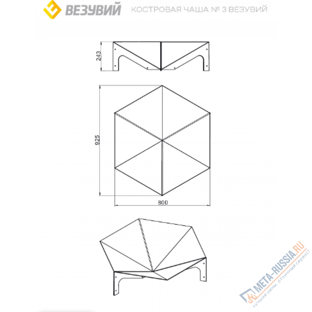Костровая чаша №3 Везувий - форма чаши позволяет хорошо вписать её в дизайн ландшафта и организовать костровую зону в удобном для вас месте. Минималистичные и строгие линии обводов чаши хорошо подойдут к разным дизайнерским решениям участка. Костровая чаша имеет шестигранную форму и разборную конструкцию, что облегчает процесс ее транспортировки и перемещений с участка.
