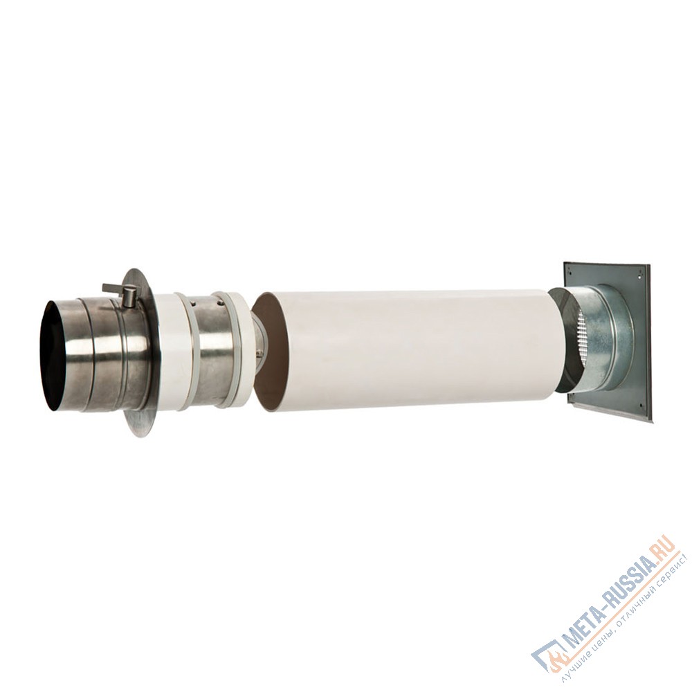 В комплекте ПВХ-труба и внешняя решётка забора воздуха