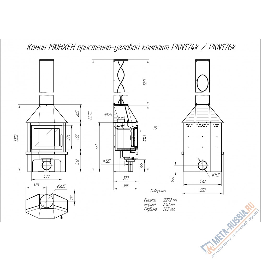 Печь-камин Экокамин МЮНХЕН пристенно-угловой КОМПАКТ изготовлен из огнестойкого стального сплава, внешние стенки толщиной 3 мм., а толщина стенок камеры, в которой происходит процесс горения дров, 5 мм.
