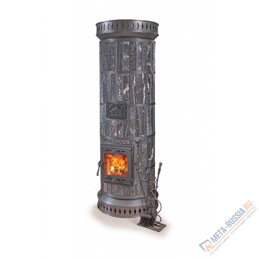 Выпуклый рельеф поверхности печи не только придаёт внешнему виду оригинальность, но и увеличивает излучаемую способность. Таким образом, относительно небольшая печь просто «пышет» теплом