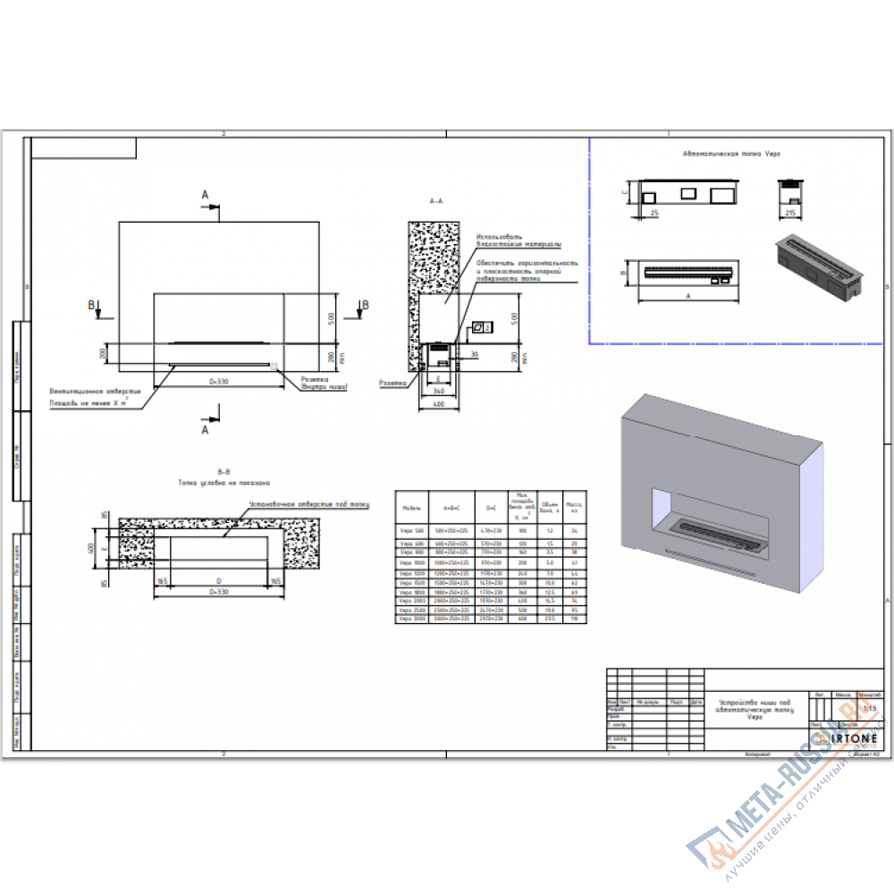 Технические характеристики Автоматический паровой электрокамин Airtone Vepo 3000 Графит-сатин: