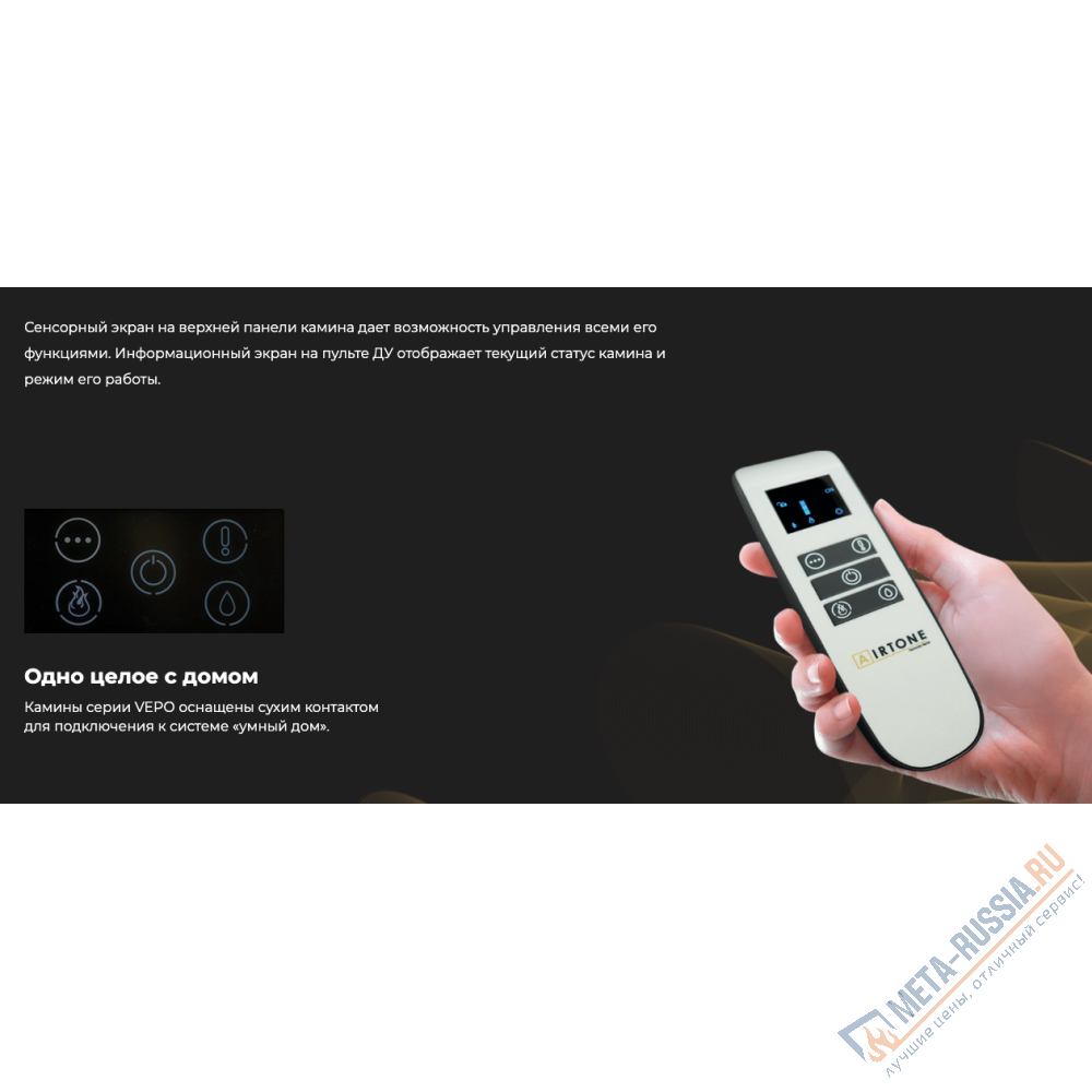 - Управление: Сенсорный экран на камине, пульт ДУ или система "Умный дом"