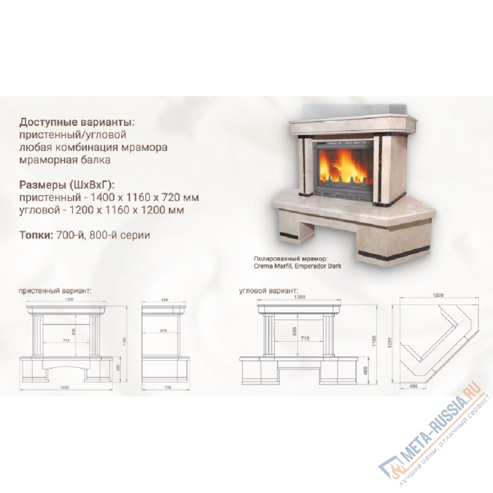 Цена зависит от сорта мрамора (цвета), размеры каминной топки и какое открывание двери топки боковое или вверх. Цены в карточке товара указаны на 700 и 800 серию под боковое открывание двери. Если у Вас уже каминная топка установлена и требуется каминная облицовка это уже будет индивидуальный проект и просчет стоимости делается отдельно.