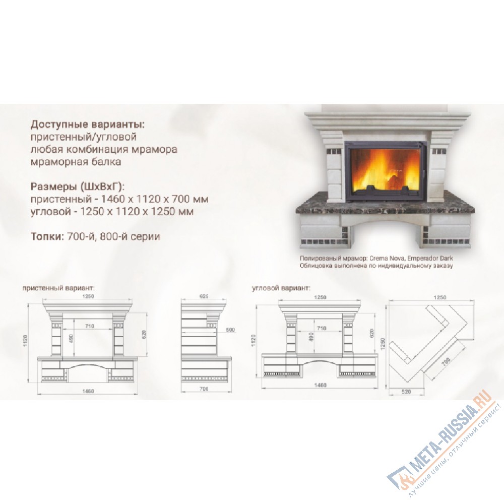 Цена зависит от сорта мрамора (цвета), размеры каминной топки и какое открывание двери топки боковое или вверх. Цены в карточке товара указаны на 700 и 800 серию под боковое открывание двери. Если у Вас уже каминная топка установлена и требуется каминная облицовка это уже будет индивидуальный проект и просчет стоимости делается отдельно.