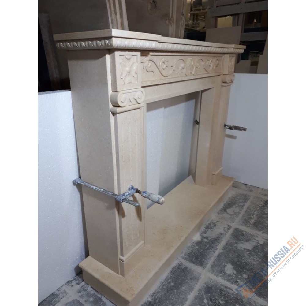 Изысканный мраморный портал Cleo изготовлен из полированного качественного мрамора. Дизайн арки выполнен в П-образном стиле с классическими узорами, скромный рисунок, по бокам расположены симметричные рельефные украшения , которые делают камин элегантным центром комнаты.