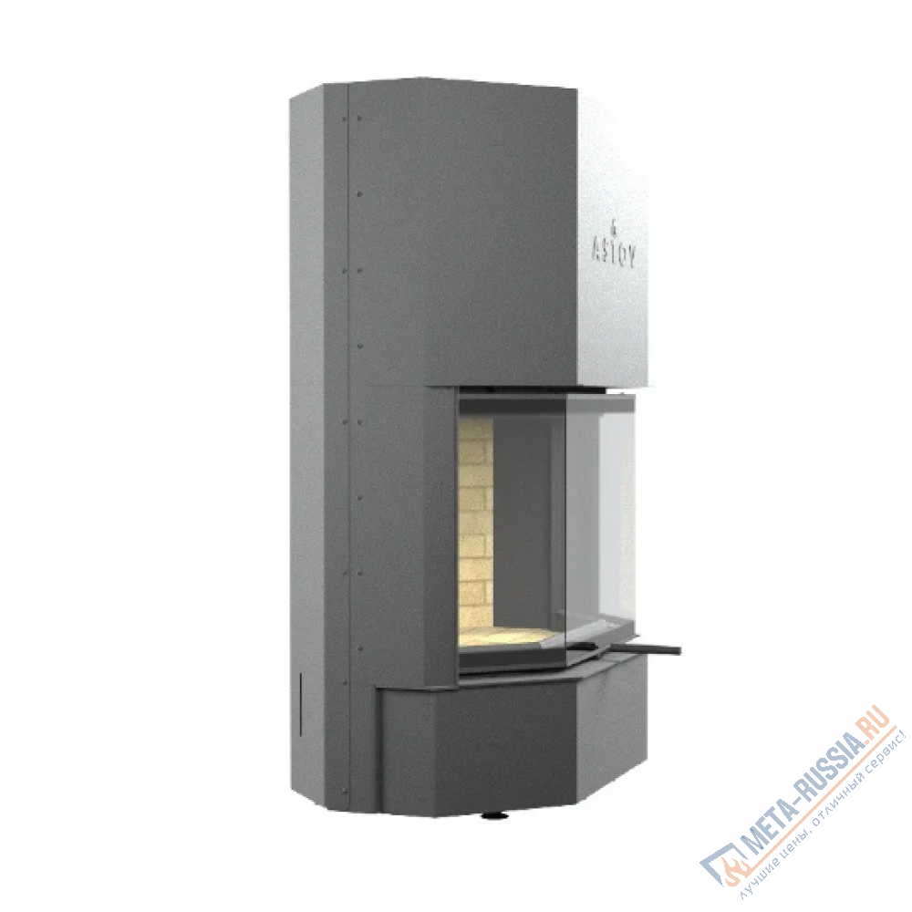 Каминная топка ASTOV ПП 8857 - подовая топка с призматическим стеклом подъемным механизмом дверцы.