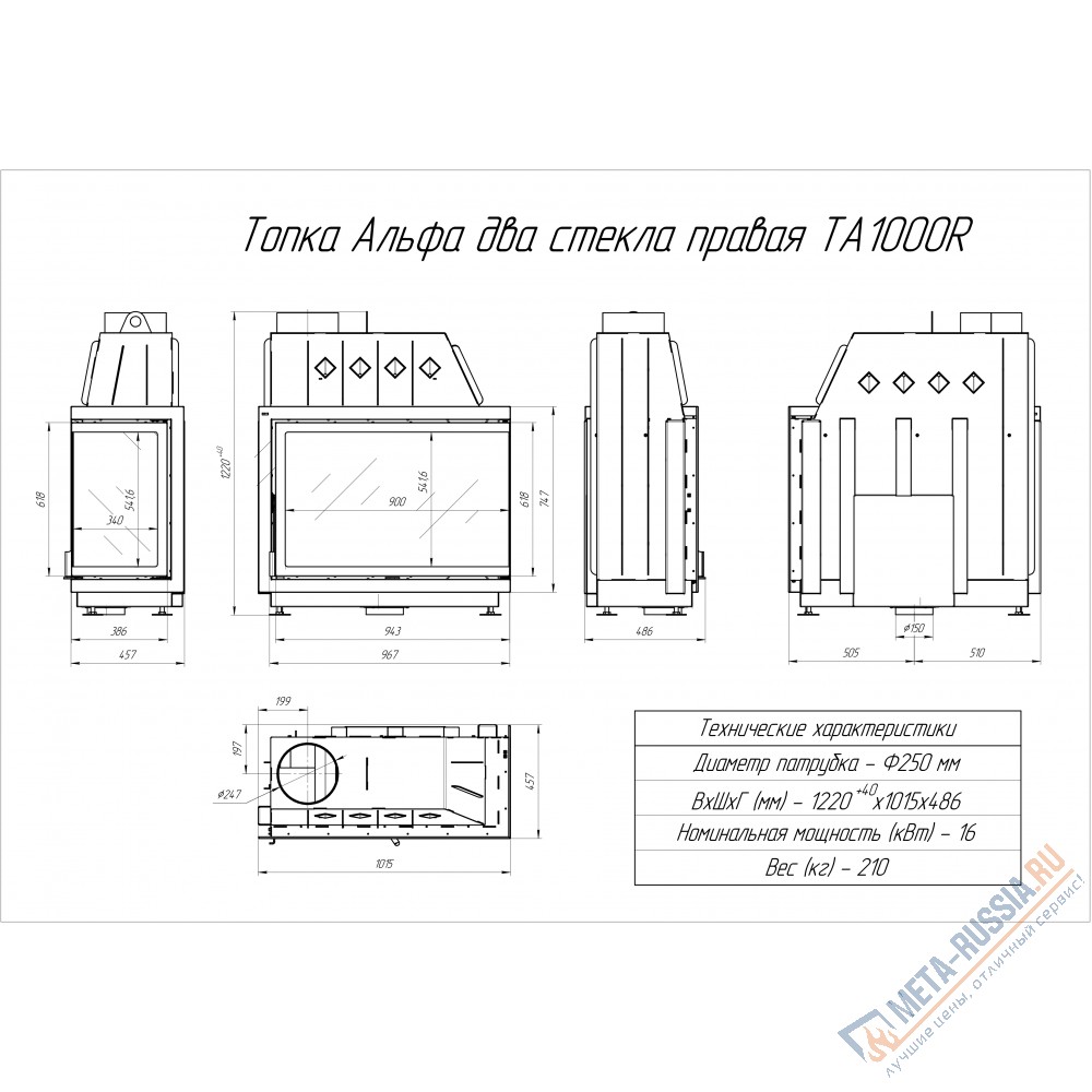 Характеристики Каминной топки ЭкоКамин АЛЬФА 1000R TA1000R: