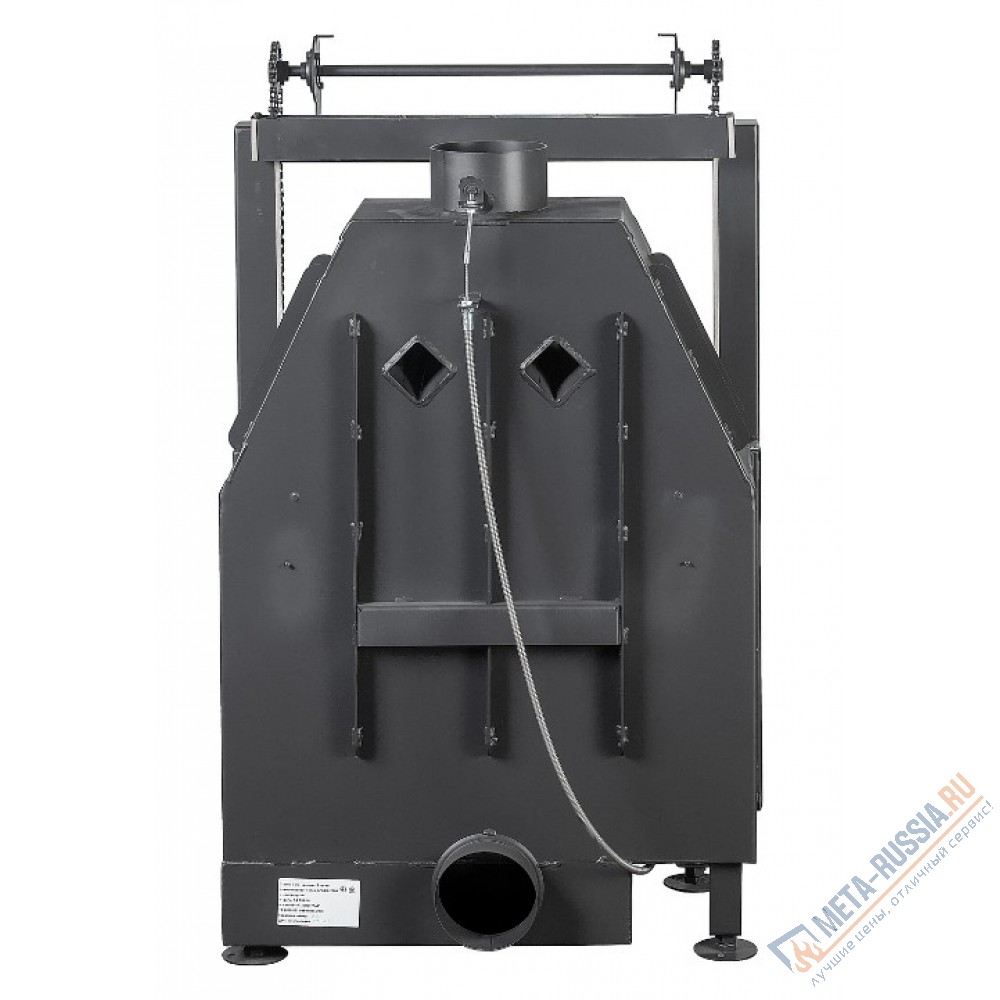 - Высокий дымосборник и пламя рассекатель не позволяют дымовым газам попадать в помещение при открывании дверцы