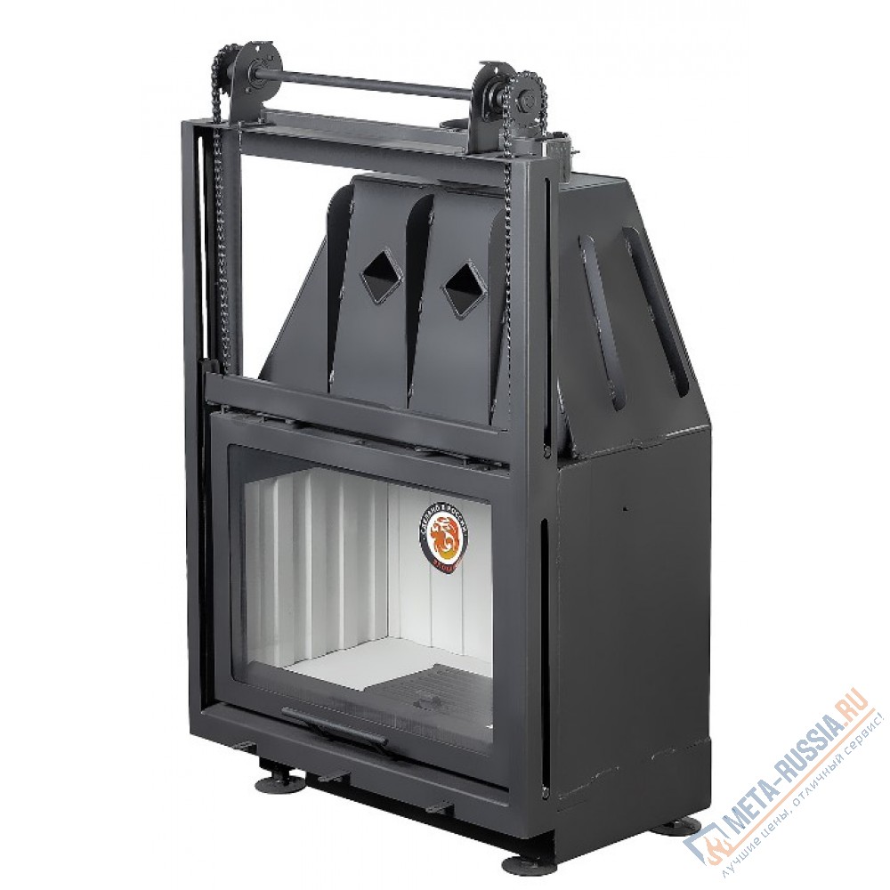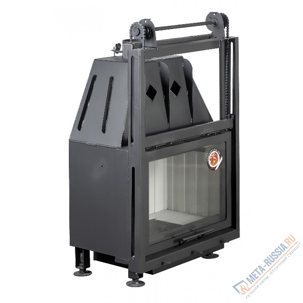 Топка ЭкоКамин Альфа 700 K имеет систему подъема дверки вверх, цепной механизм. Топка применяется для обогрева жилых помещений, в режиме непрерывной эксплуатации от 6 до 24 часов в зависимости от режима горения. Периодичность закладки дров, с интервалом 45-90 мин. В экономичном режиме горения интервал закладки дров может быть от 3 до 5 часов. В качестве топлива применяются сухие дрова с влажностью не более 18%. Все топки разработаны таким образом, что их можно топить, с открытой и закрытой дверцей топки, независимо от наличия или отсутствия подъемного механизма. Мы рекомендуем топить топку с закрытой дверцей, в этом случае вы получаете максимальную тепловую эффективность и безопасность.