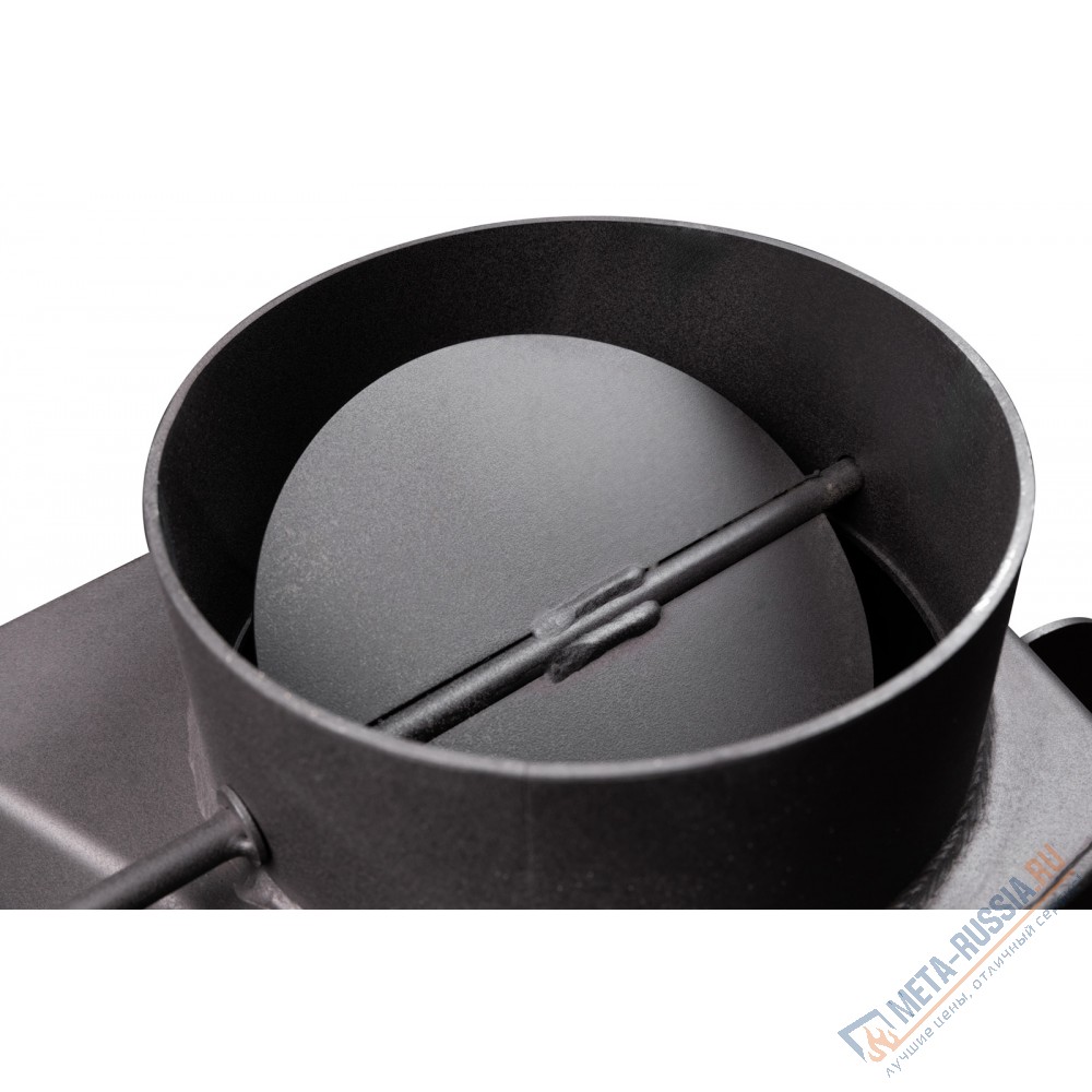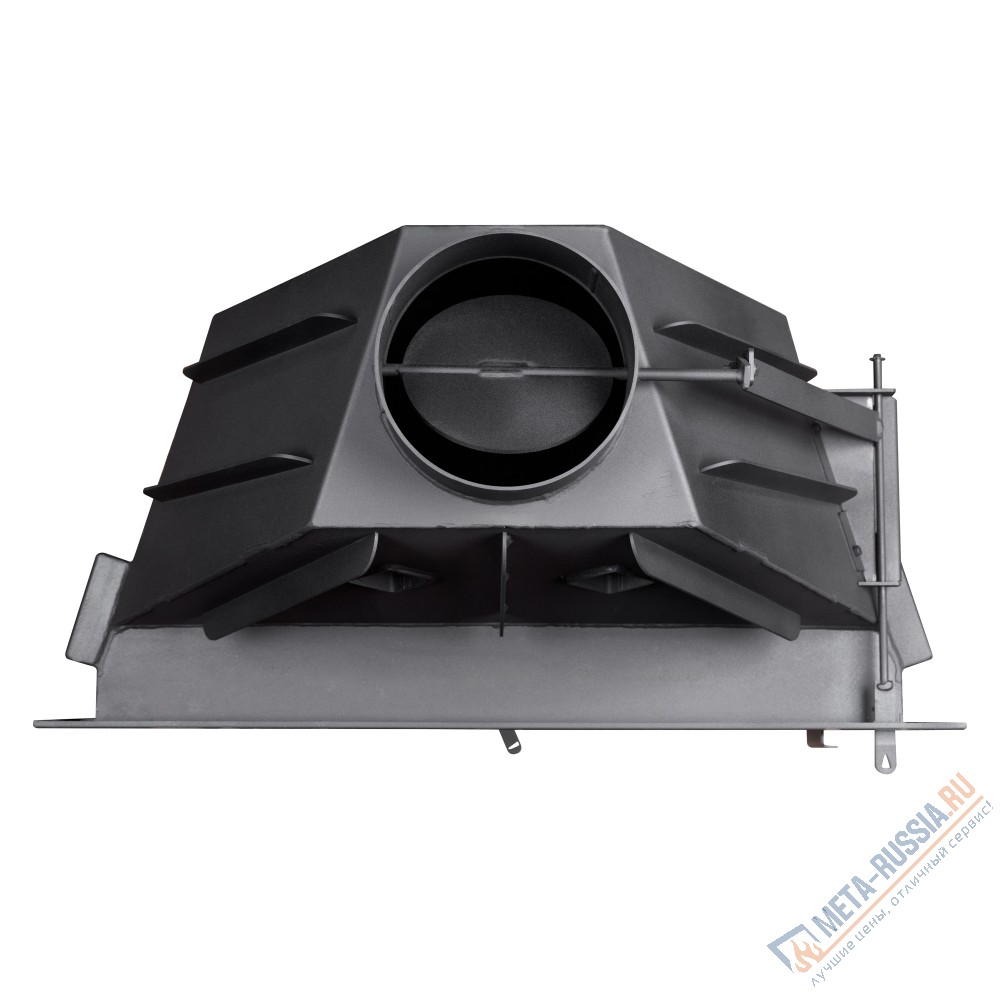 - Встроенный шибер (заслонка патрубка дымохода), регулируется гибким приводом с лицевой части