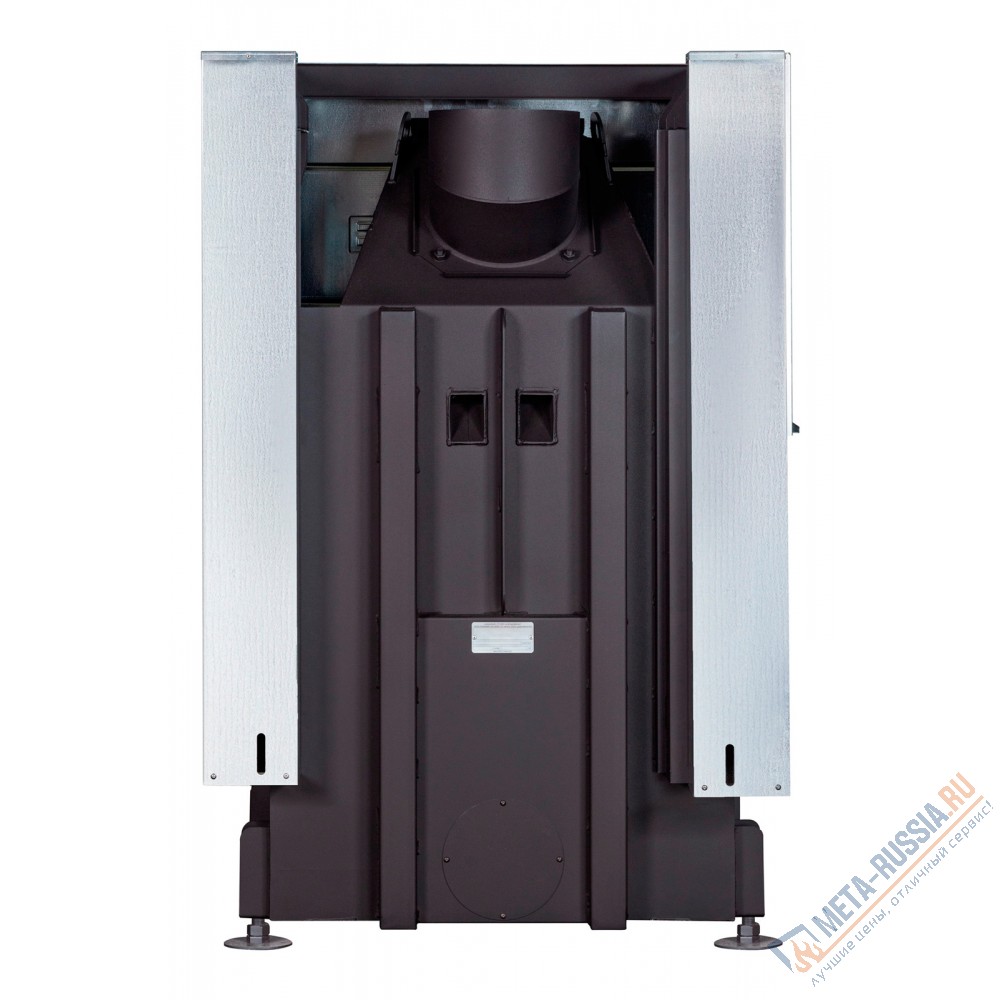 Топка ЭкоКамин Дельта 800L оснащена стеклокерамической Г-образной дверцей с подъемным механизмом, которая открывает завораживающий вид на горящие дрова. Камера сгорания футерована литьевым шамотом белого цвета, который не боится высоких температур и обеспечивает долгий срок службы изделию. Под чугунным колосником расположен большой зольный короб для сбора сажи и золы. Вторичный дожиг позволяет существенно экономить на твердом топливе и не загрязняет окружающую среду, т.к. углекислый газ, выходя из трубы, имеет низкую концентрацию. Тепловая мощность топки 16 кВт, она способна обогреть комнату от 65 до 150 кв. метров, поэтому холодно в доме точно не будет.