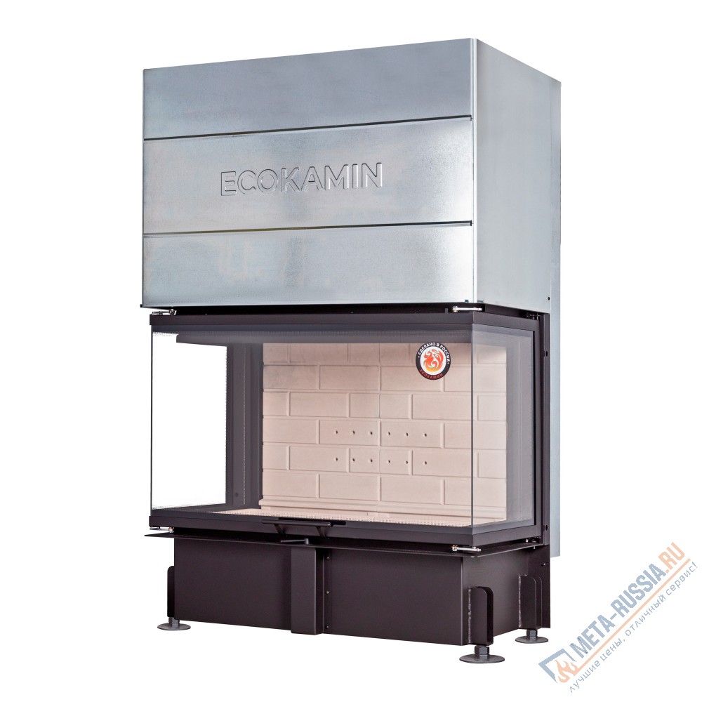 Топка ЭкоКамин Дельта 1000P оснащена стеклокерамической П-образной дверью с подъемным механизмом, которая открывает завораживающий вид на горящие дрова. Камера сгорания футерована литьевым шамотом белого цвета, который не боится высоких температур и обеспечивает долгий срок службы изделию. Вторичный дожиг позволяет существенно экономить на твердом топливе и не загрязняет окружающую среду, т.к. углекислый газ, выходя из трубы, имеет низкую концентрацию. Тепловая мощность топки 18 кВт, она способна обогреть комнату от 80 до 175 кв. метров, поэтому холодно в доме точно не будет.