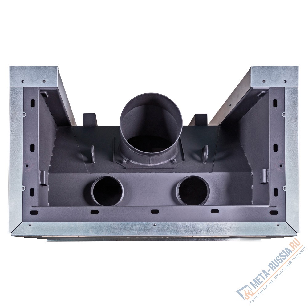 - Система забора воздуха извне, имеет два встроенных патрубка диаметром 125 мм для подключения забора воздуха на горение из соседнего помещения, улицы, подвала, и повышает надежность работы топки