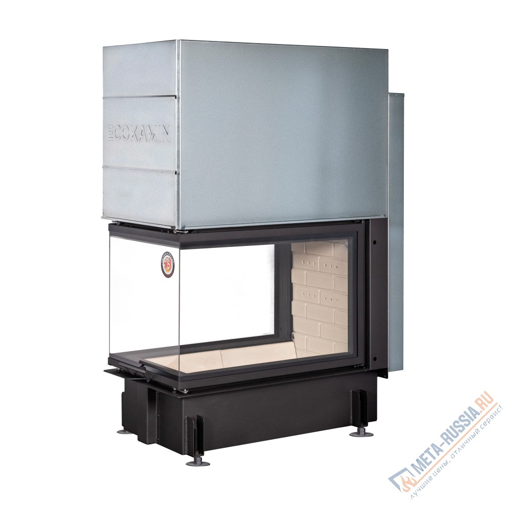 Топка ЭкоКамин Дельта 900 оснащена стеклокерамической U-образной дверью с подъемным механизмом, которая открывает завораживающий вид на горящие дрова. Камера сгорания футерована литьевым шамотом белого цвета, который не боится высоких температур и обеспечивает долгий срок службы изделию. Под чугунным колосником расположен большой зольный короб для сбора сажи и золы. Вторичный дожиг позволяет существенно экономить на твердом топливе и не загрязняет окружающую среду, т.к. углекислый газ, выходя из трубы, имеет низкую концентрацию. Тепловая мощность топки 13 кВт, она способна обогреть комнату от 55 до 110 куб. метров, поэтому холодно в доме точно не будет.