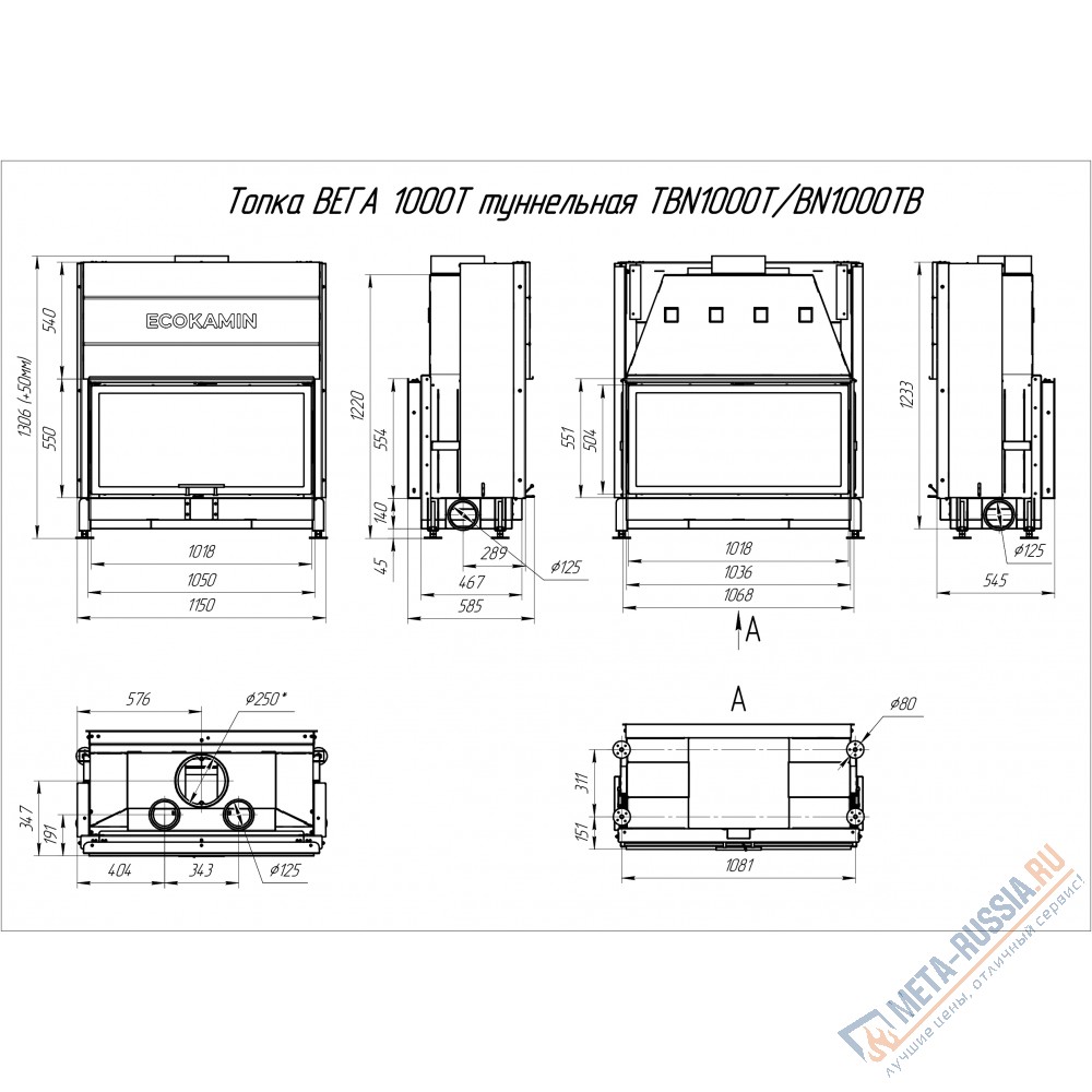 Оформить заказКаминная топка Экокамин ВЕГА 1000 T туннельная (TBN1000T)