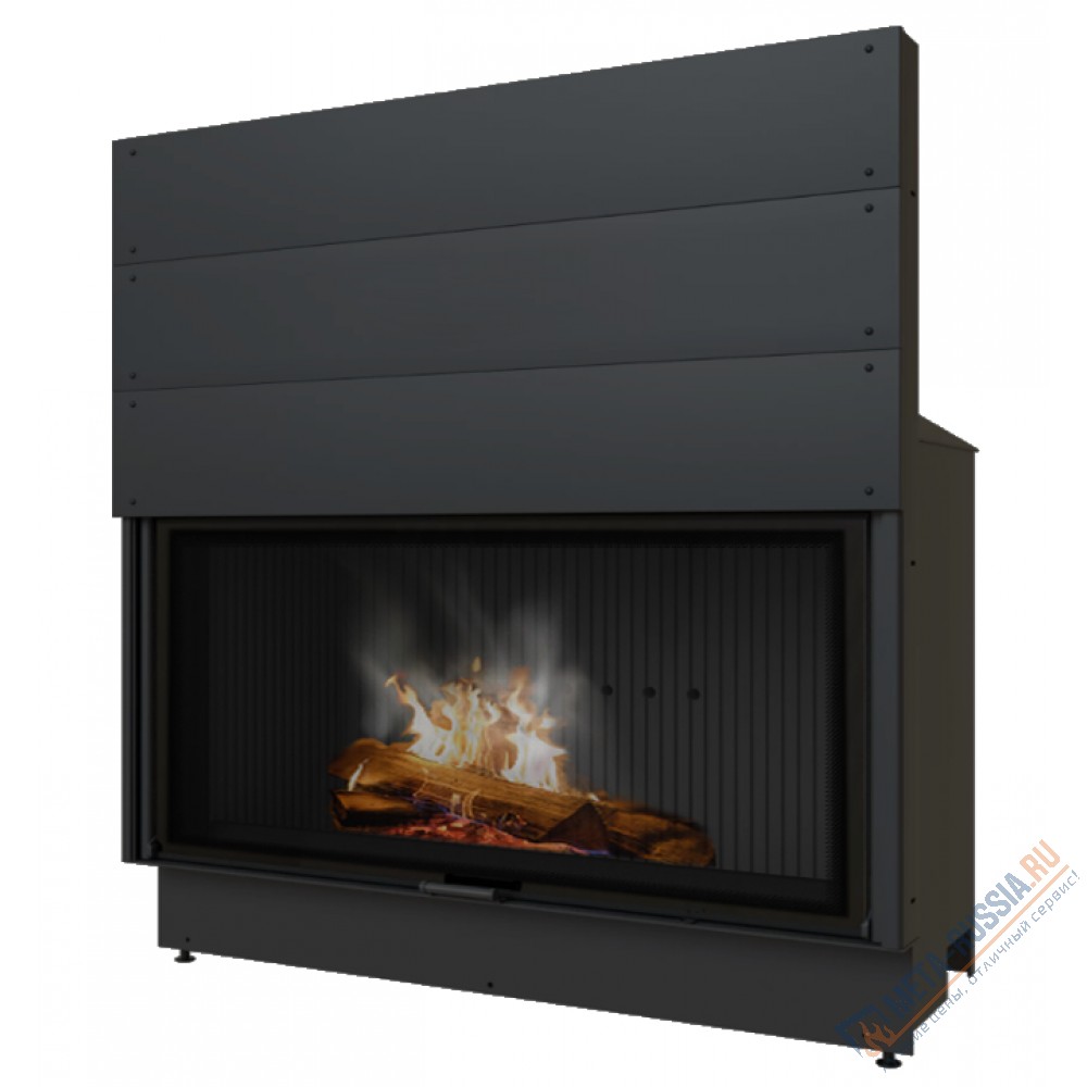 Каминная топка ESMA 1C 117/54-UP подового горения, что увеличивает ее КПД. Мощность топки 11кВт, способна отопить помещение до 110 кв.м. Футеровка формирует структуру, несущую на себе всю термическую нагрузку. Панели 3Д – сбалансированный вариант, тепло распределяется равномерно, а внушительная масса поддерживает высокотемпературное горение. Плотное прижимание дверки в нижней точке закрывания и качественные регуляторы позволяют без напряжения управлять огненным процессом, от практически невидимого до бушующего. Выходной патрубок сделан для подключения трубы «по конденсату». Влага будет испаряться не оказывая разрушающего воздействия на стыковочные узлы.