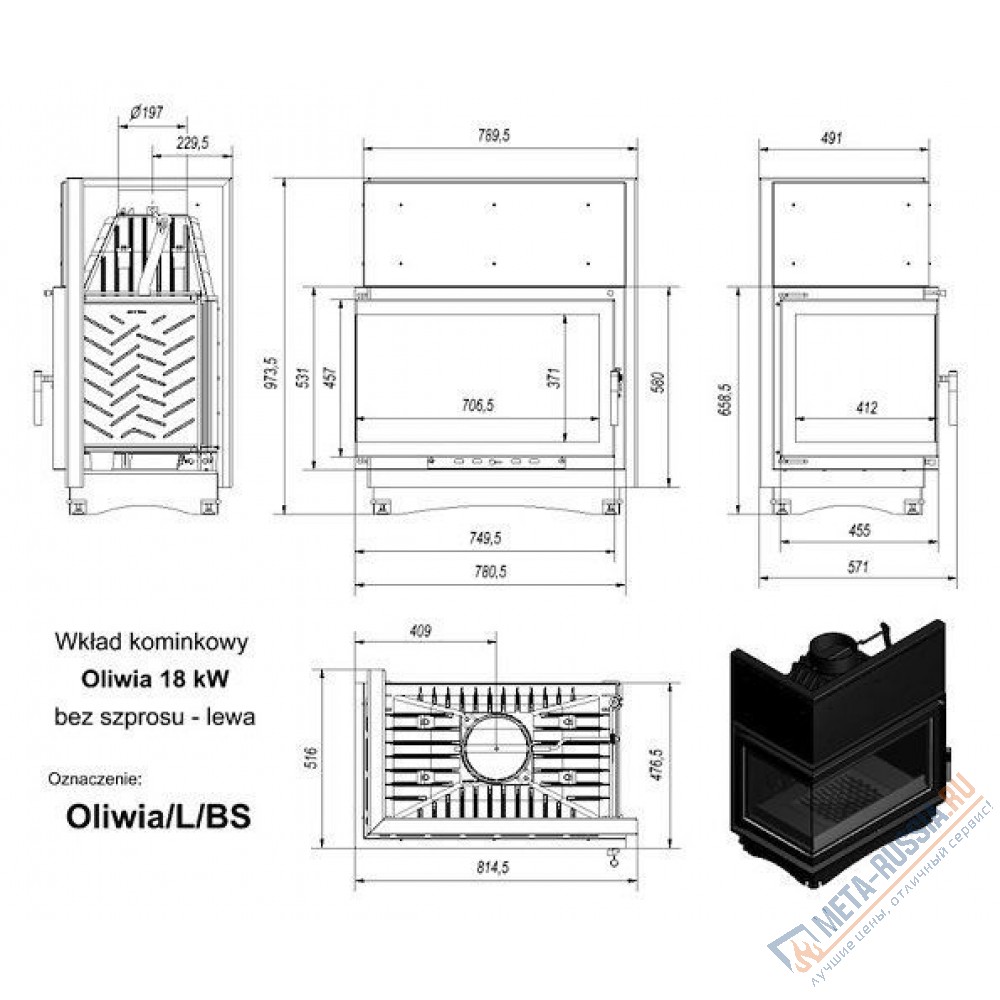 Оформить заказКаминная топка Kratki Oliwia/L/BS (угловое стекло слева)