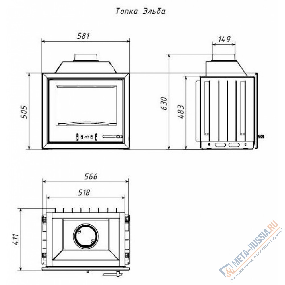 Каминная топка Мета Эльба изготовлена из жаростойкой стали толщиной 3 мм, которая при условии соблюдения требований правильной эксплуатации, выдерживает высокие термические нагрузки и отлично передает тепло, а также служит долгие годы без нареканий.