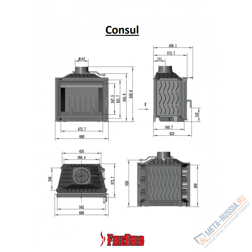Чугунная каминная топка FireBird Consul 12кВт является аналогом польской каминной топки Kratki ANTEK. Способна обогреть в номинальном режиме работы помещение объемом до 200 куб.м., в интенсивном - до 260 куб.м.