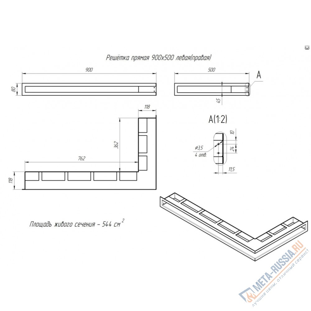 люфт, -, туннель, угловая, вентиляционная, решетка, для, камина, 900, х, 500, мм, левый, угол, черная, pk, mu, 33548