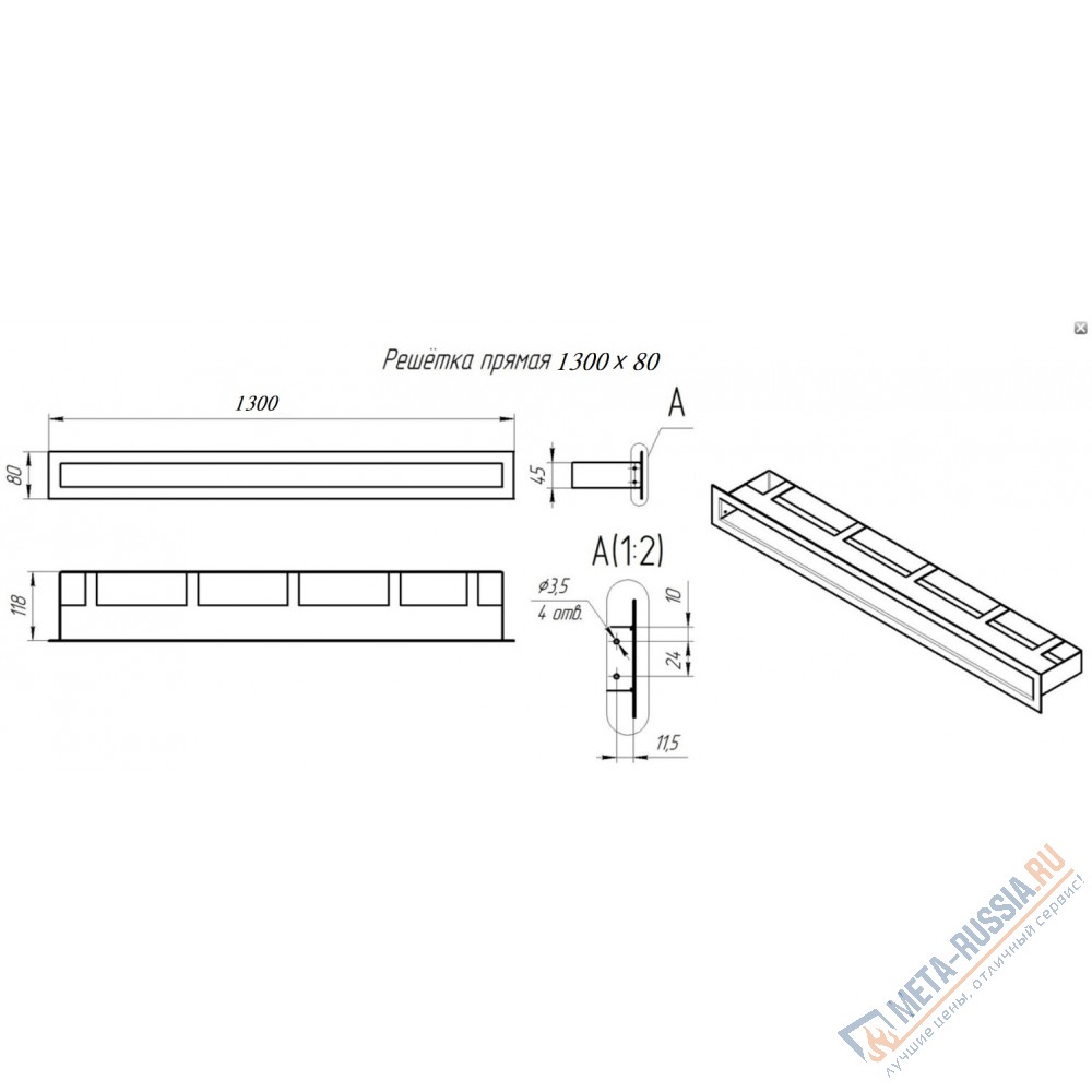Туннельная прямая каминная вентиляционная решетка 1300 х 80 (мм) белая - для каминов покрыты порошковой краской черного или белого цвета, которая обеспечивает нормальную работу без потери внешнего вида при ее нагревании.