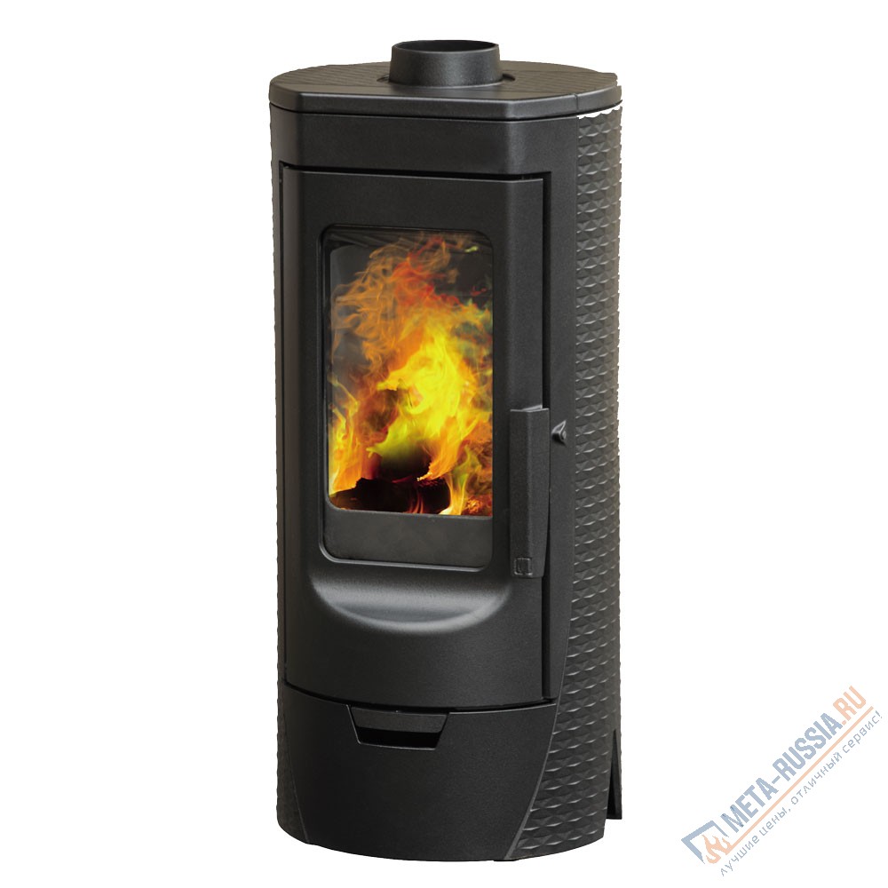Вертикальная конструкция и верхнее подключение дымохода позволяют располагать печь в помещении не только с удобством, но и с большой экономией для полезного жилого пространства. Спектакль огня в печи TARA отличается особенной красотой, так как вытянутая форма печи и, соответственно, топочной камеры, предоставляет много места для пламени, которому есть где разгуляться. Плоское огнеупорное стекло топки не коптится и не загрязняется за счет отличной работы системы «чистое стекло». На дверце печи есть удобная ручка. Внизу печь укомплектована небольшим, но функциональным закрытым дровником.