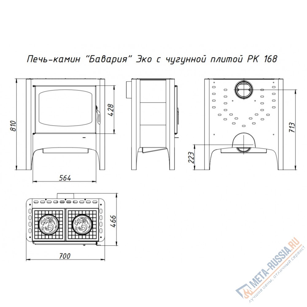Печь-камин Экокамин Бавария Эко с плитой две конфорки изготовлена из термостойкого стального сплава и окрашена специальной эмалью черного цвета, которая не теряет своего изначального вида от высоких температур.