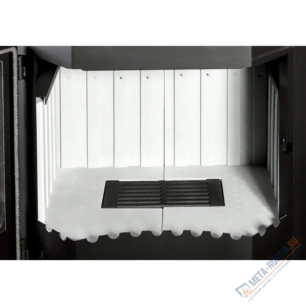 Печь-камин Экокамин Бавария Призматик c плитой способен эффективно отопить площадь до 120 квадратных метров. После интенсивного прогрева помещения камин может быть переведен в режим длительного горения, что позволит поддерживать нужную температуры в течение 6 часов на одной закладке дров. Топочная камера выложена фирменным литьевым шамотом. Он надежно предохраняет топочную камеру от воздействия высоких температур и легко может быть заменен в случае повреждения.