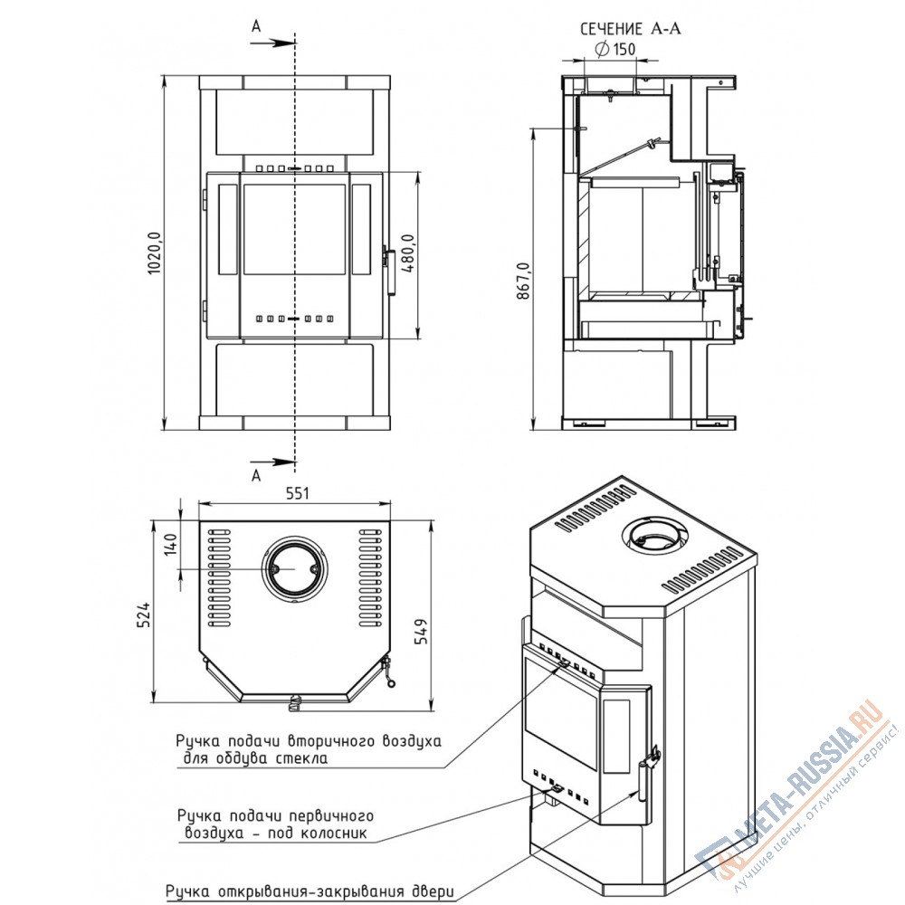 Печь-камин Мета Ангара АОТ-9,0-02 недорогая печь прекрасно подойдет для отопления небольшого загородного дома. Призматическое стекло выгодно отличают ее от конкурентов.