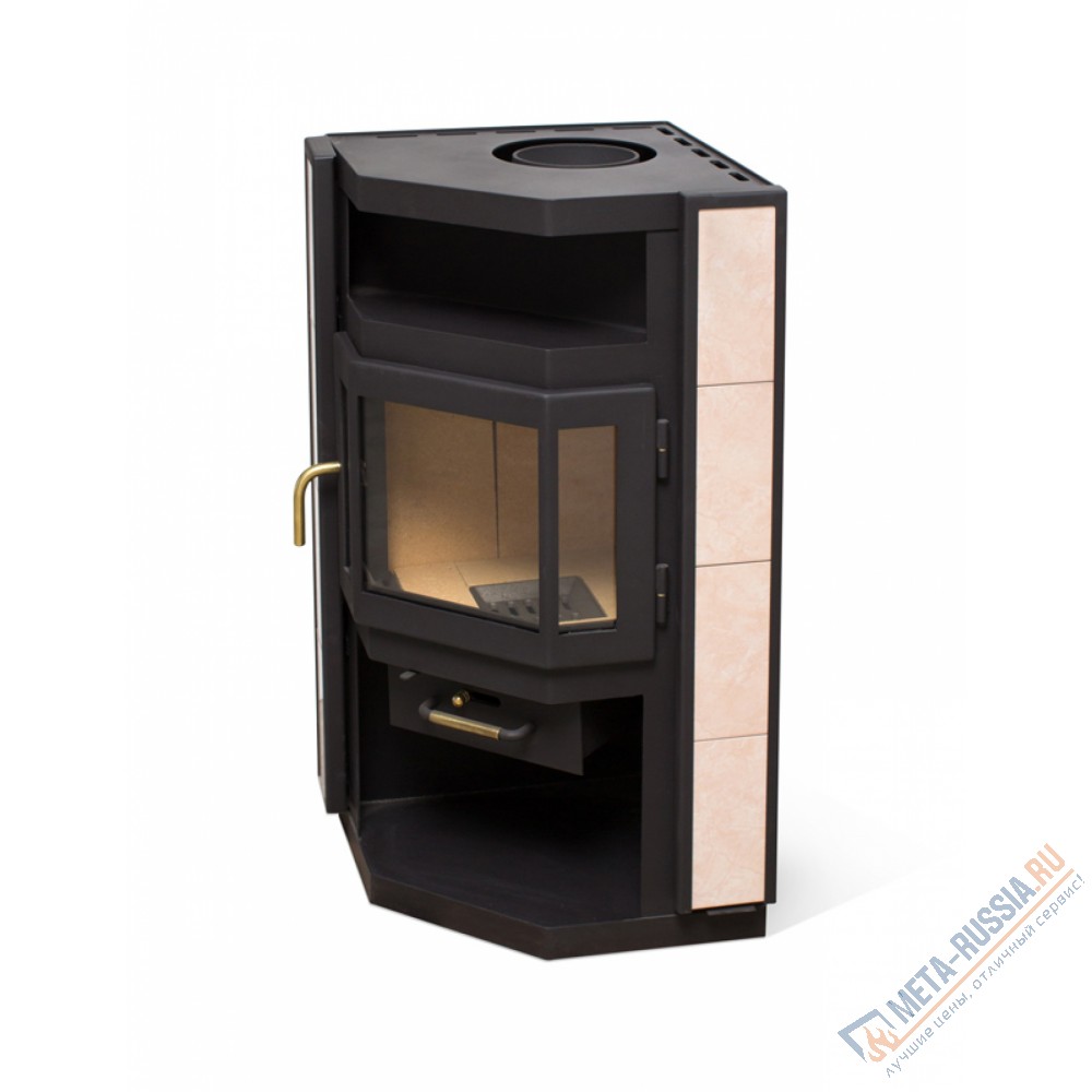 Корпус печи-камина Мета Нева изготовлен их жаропрочного металла и покрыт жаростойкой краской черного цвета. По бокам печка отделана керамикой.