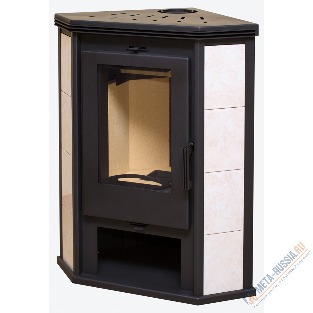 Корпус печи-камина Мета Ритм L из жаростойкой стали и облицован декоративной керамикой.