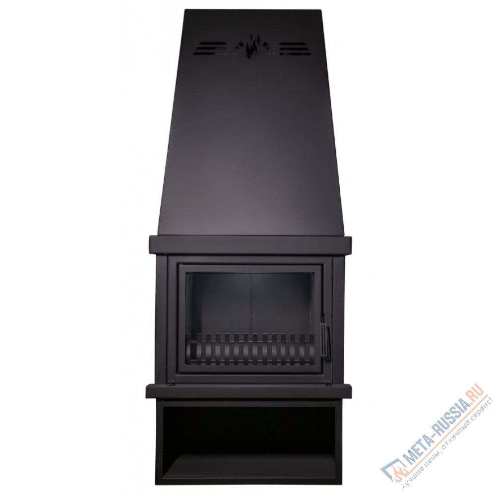 Печь-камин Мета Викинг эффективно отопить площадь до 100 квадратных метров. Конвекционные решетки в корпусе печи и кожуха способствуют быстрому нагреву помещения, а система длительного горения позволяет поддерживать нужную температуры в течение 6 часов на одной закладке дров. Диаметр дымохода - 200 мм. Подключение дымохода верхнее и заднее.