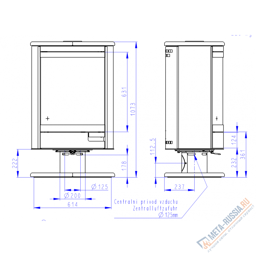 Дизайн камина подчеркивает элегантная овальная форма и большое тонированное по краям стекло. Поворотный печь камин STROMBOLI NEW, отлично подходит для отопления загородного дома или коттеджа.