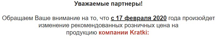 Повышаются цены на продукцию Kratki c 17.02.20!