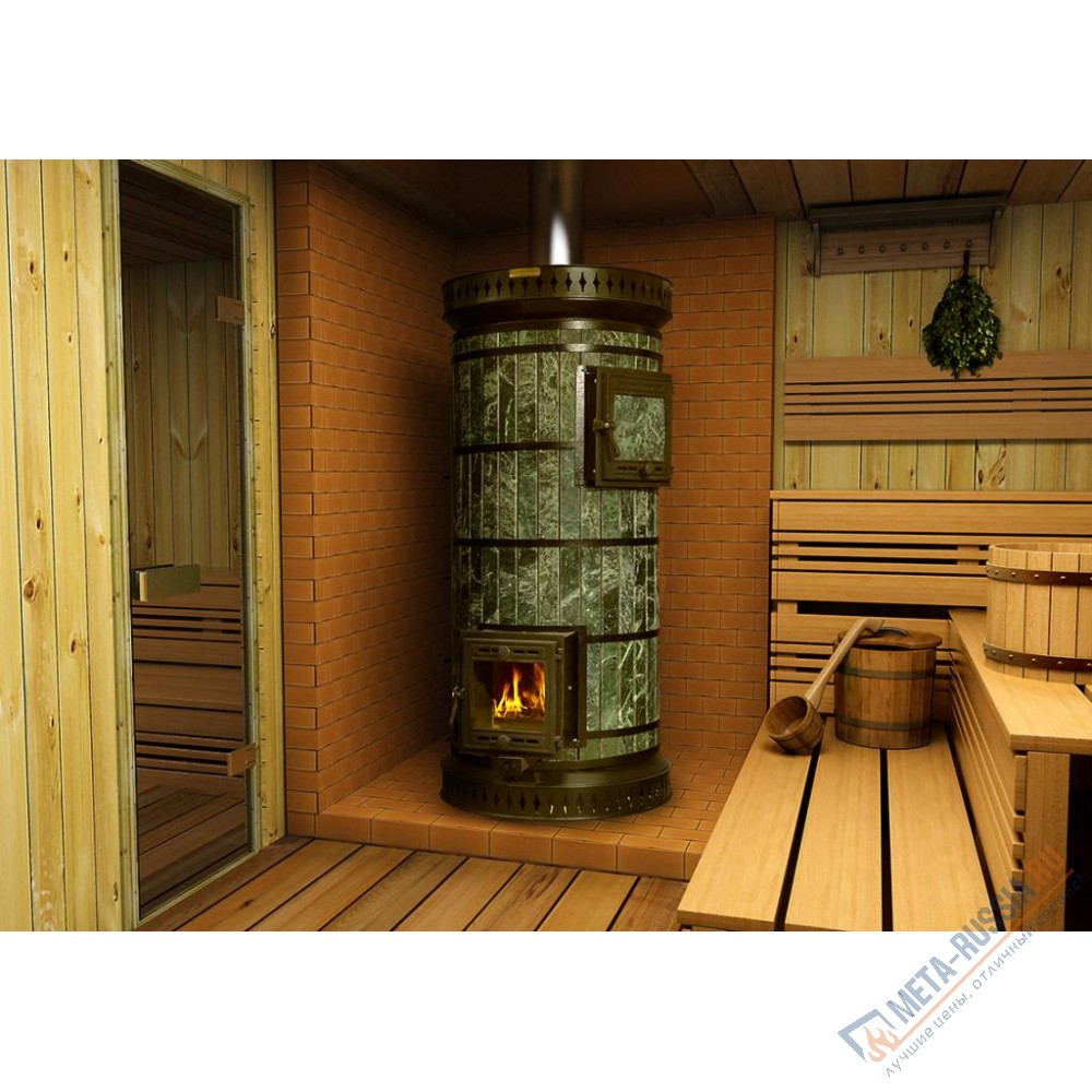 Печь банная КДМ ПББ-ЗКм -ТхО Русская баня с закрытой каменкой в облицовке талькохлорит имеет стильный дизайн