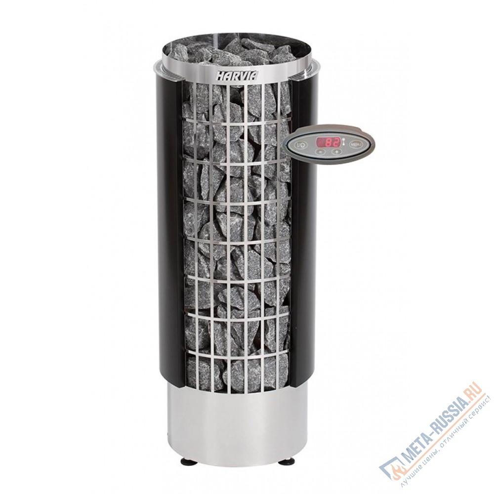 Harvia Cilindro PC110HEE (чёрная, полузакрытый кожух, выносной пульт в комплекте) является наличие защитного кожуха из оцинкованной стали, выкрашенного в черный цвет. Частично скрывающий под собой решетчатый корпус, кожух с одной стороны обеспечивает беспроблемный доступ к камням по всей их высоте, а с другой - позволяет устанавливать каменку ближе к деревянным поверхностям. Другая отличительная особенность модели - наличие выносного пульта управления, благодаря чему управлять каменкой стало еще более удобно. Такое решение также обусловило возможность встраивания каменки в нижний полок, сохраняя свободное пространство в парилке.