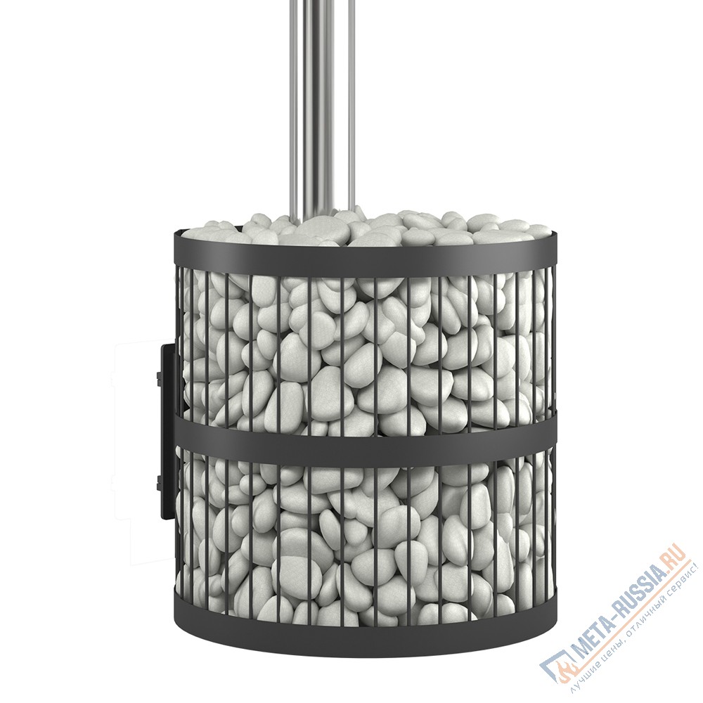 Для устройства наружной открытой каменки печь ЭТНА 24 оснащается металлическим кожухом с прорезным рисунком оригинального дизайна. Пространство между печью и кожухом из двухмиллиметровой стали заполняется камнями для бани, которые выполняют роль теплонакопителя, перераспределяют тепло от стенок топки и защищают парящихся от жёсткого инфракрасного излучения. Воду подают на нагретые камни, с которых полученный пар распространяется по всему объёму парной. Кожух диаметром 620 миллиметров вмещает в себя до 150 килограммов камней крупной и средней фракции.